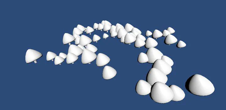 For this one, over the past winter break, I relaxed by seeing if I could generate mushrooms with a few functions, and arrange them in interesting “pseudo” natural looking ways, perhaps similar to the image below.