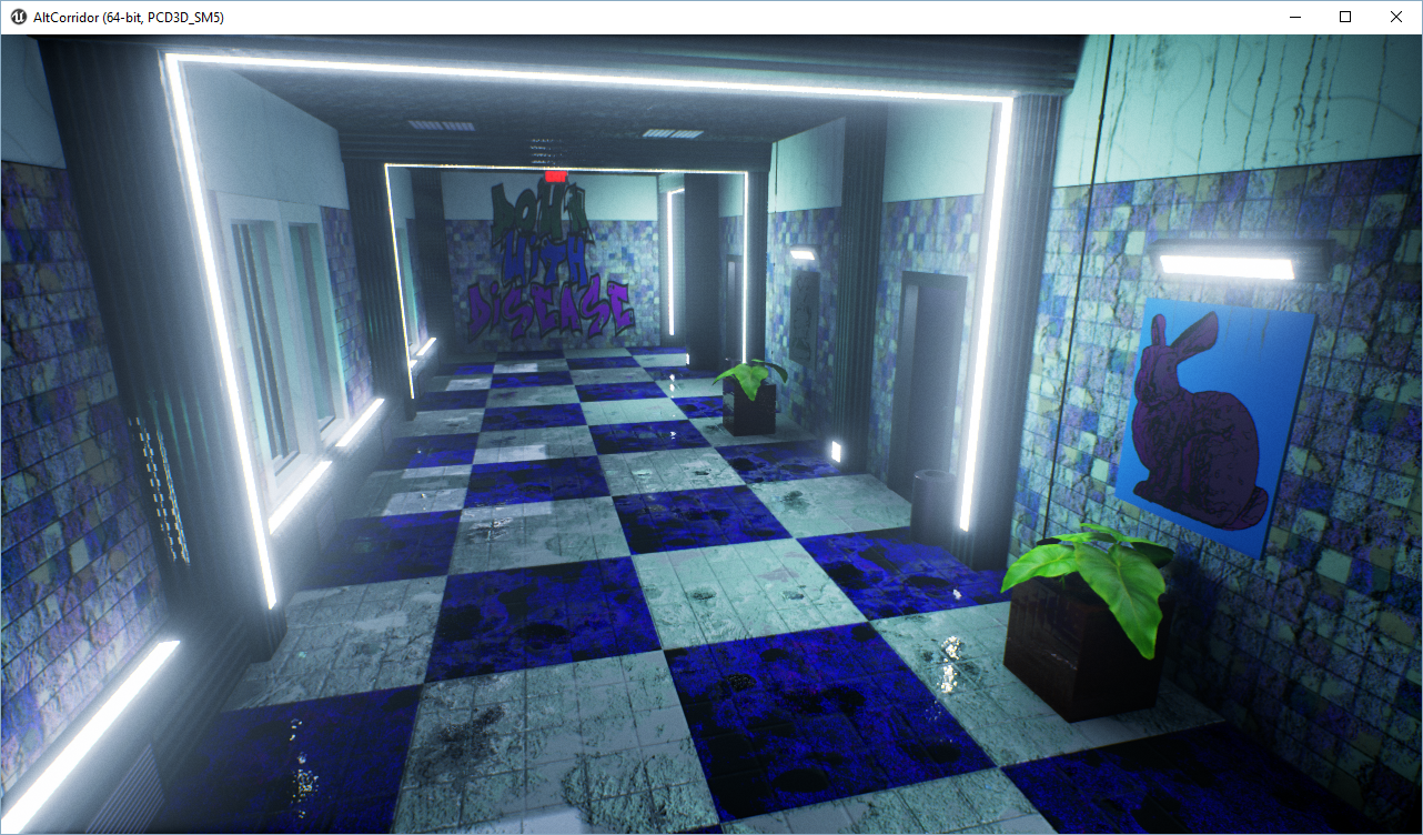 For an environment modeling course I took at Purdue University with Daniel Triplett, we had to put together a classic corridor scene in Unreal Engine 4 w/a couple of different lighting setups. All textures were made in Substance Designer.